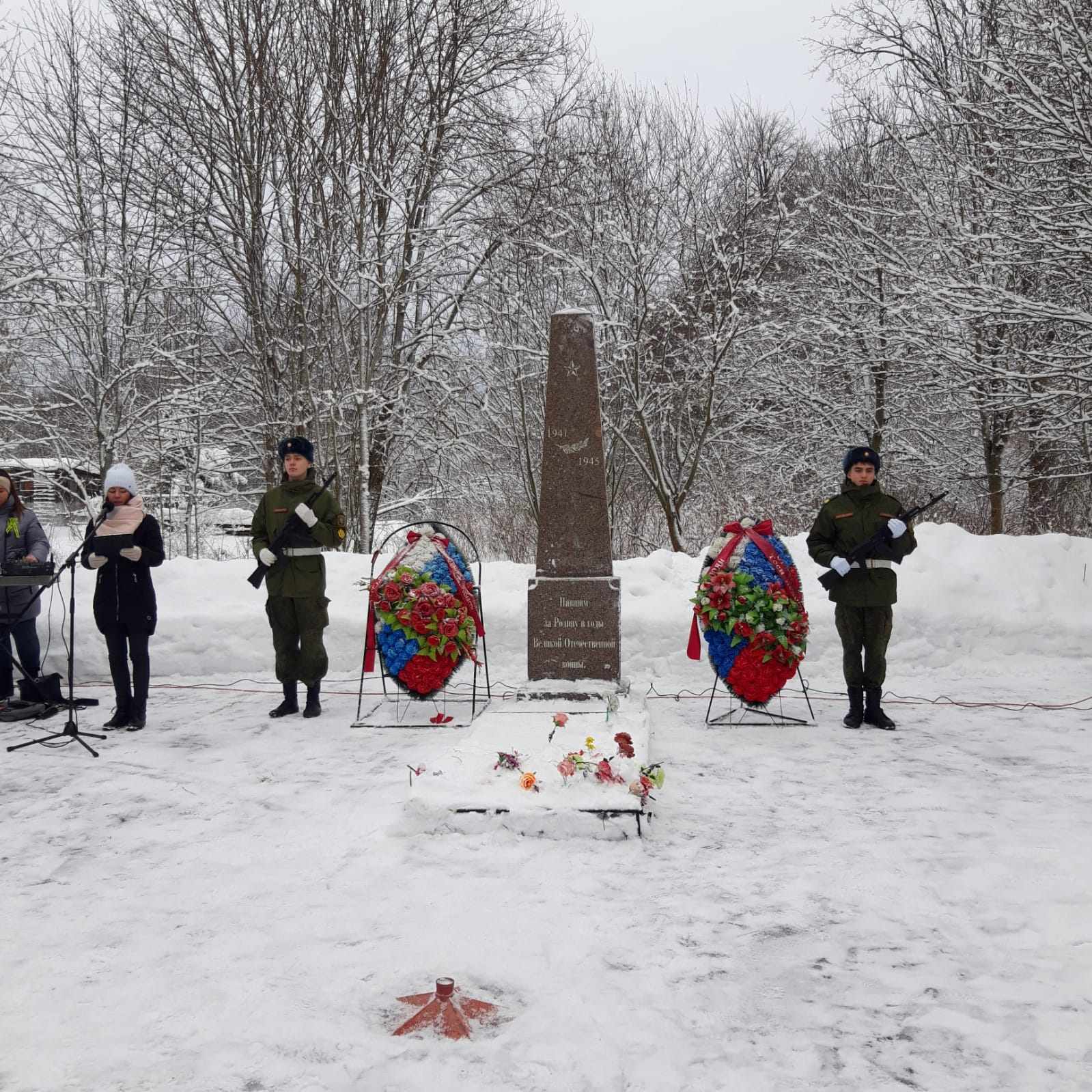Митинг, посвященный 78-й годовщине со дня полного снятия блокады Ленинграда и освобождения Тосненского района от немецко-фашистских захватчиков в годы Великой Отечественной войны состоялся в поселке Ушаки 27.01.2022 у Мемориала воинской славы