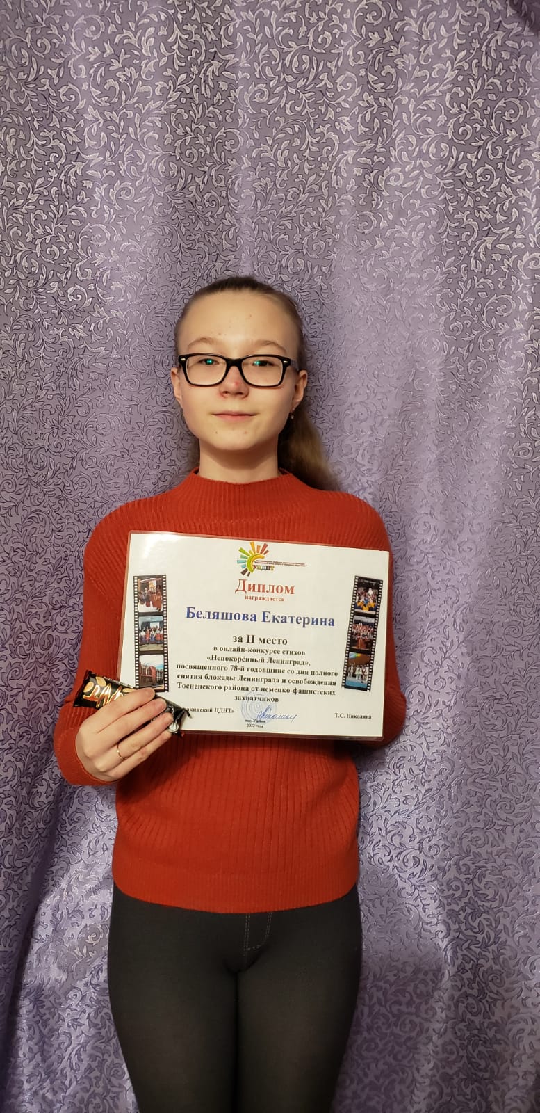 Состоялся онлайн-конкурс стихов "Непокорённый Ленинград», посвященный 78-й годовщине со дня полного снятия блокады Ленинграда и освобождения Тосненского района от немецко-фашистских захватчиков. Мы вместе с вами вновь перелистали самые трагические страницы истории нашей Родины. Вспомнили : искалечено судеб войной, сколько пролито слез, сколько отважных героев и несгибаемой стойкости воинов потребовалось, чтобы положить конец 900-дневной осаде Великого города.