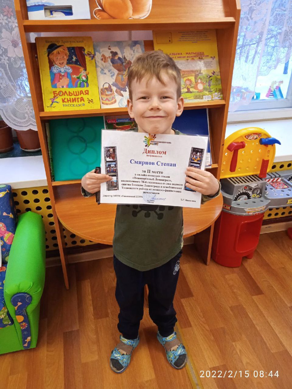 В исполнении детской вокальной студии Ушакинского центра досуга и народного творчества, руководитель Кристина Мохнова, солистов : Гарасим Василины, Артема Болгар, Галины Фроловой , Кристины Мохновой, Валентины Репиной, Александра Карпова прозвучали прекрасные песни о войне и детстве. Ведущие программы Александр Карпов, Марина Орлова, звукооператор Екатерина Юдина, художник по свету Сергей Антонов.