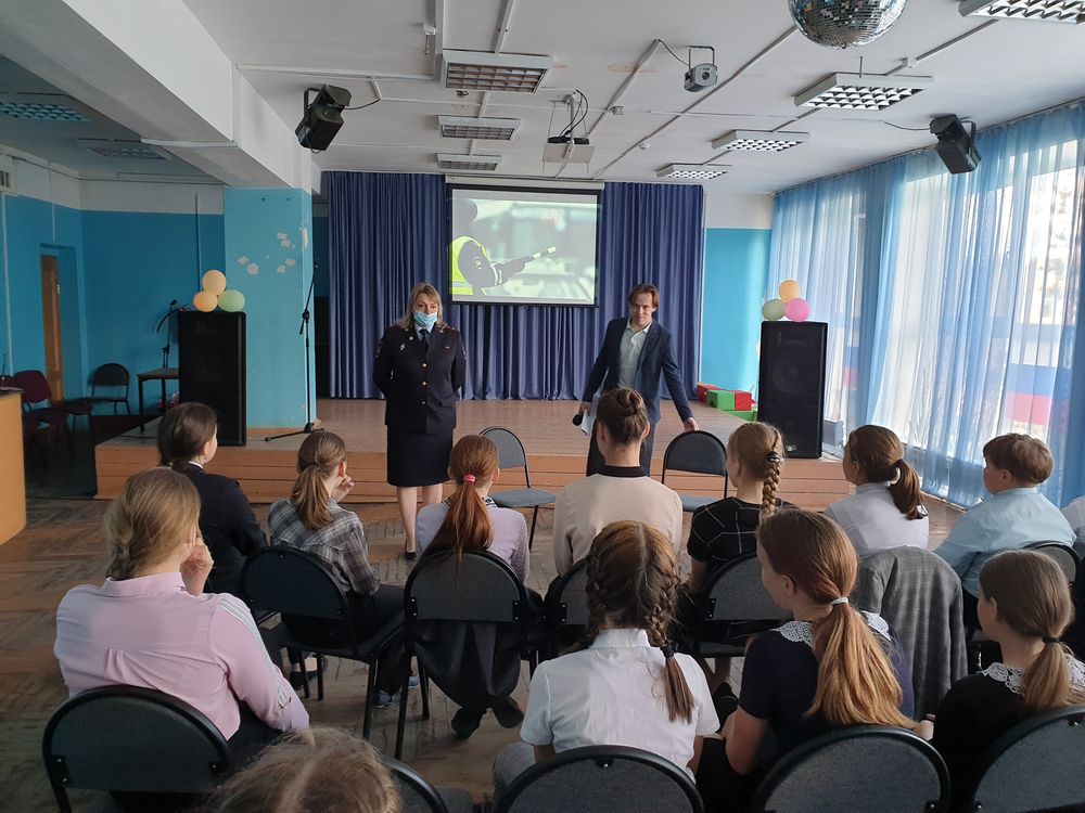 Ведущий мероприятия Александр Карпов рассказал о том, как важен для человека в жизни правильный выбор профессии и пригласил к разговору инспектора по пропаганде безопасности дорожного движения по Тосненскому району старшего лейтенанта полиции Егорову Марию Юрьевну. Она увлекательно рассказала детям о своей работе, а также предупредила детей о необходимости соблюдать правила дорожного движения во время летних каникул. В конце ее выступления был показан социальный ролик ОГИБДД УМВД России на эту тему.