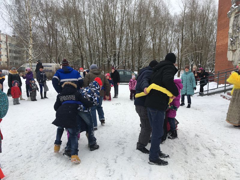 Веселые уличные гуляния для жителей Тосненского городского поселения: деревни Георгиевское, села Ушаки, деревни Новолисино и посёлка Ушаки,  были организованы и проведены коллективом Ушакинского центра досуга и народного творчества совместно с вокальным ансамблем «Надежда», фольклорным коллективом «Истоки» из центра реабилитации инвалидов поселка Шапки и муниципальной концертной группой «Камея». С 14 по 17 февраля ежедневно мы провожали зиму - развлекали народ играми, русскими забавами, театрализованным представлением, песнями и танцами.