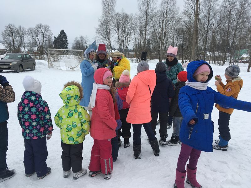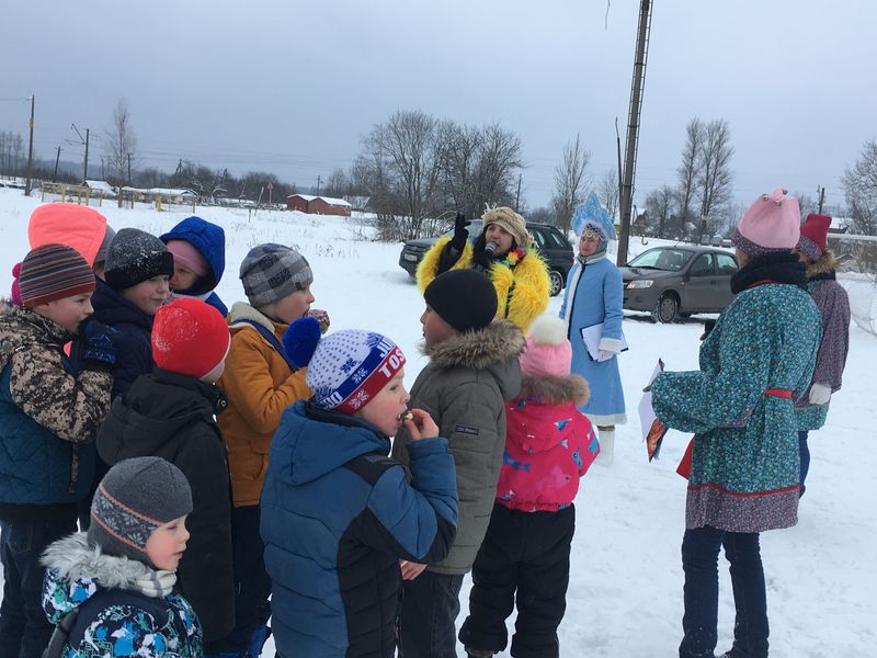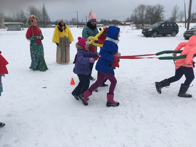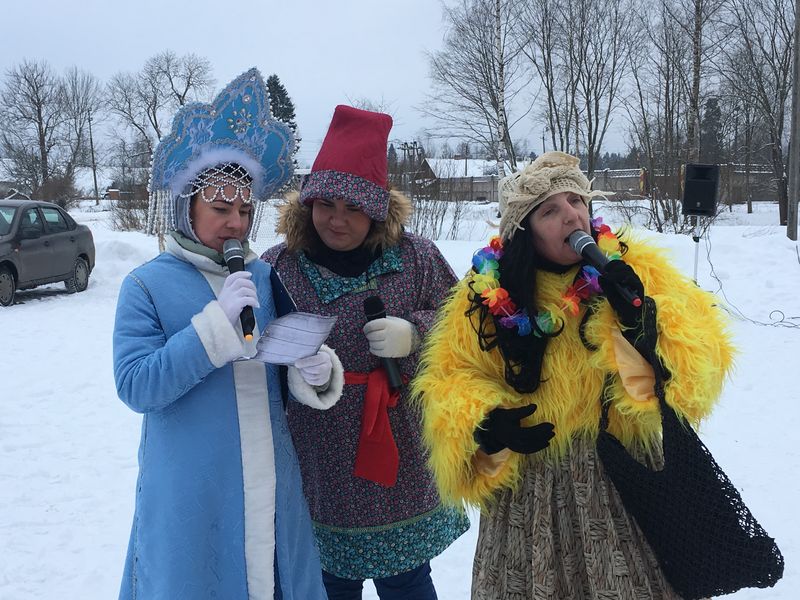 По традиции праздник начинался с зазывалок и приветствия скоморохов Душеньки иМарфушеньки. Появлялась  Зимушка-Зима. И сдавать свои дела пока не хотела, просила позабавить ее,чтоб со спокойным сердцем уступить место своей названной сестрице Весне, но не все так просто было! После песен, игр и зажигательных танцев вместо сестры-Весны явилась на праздник Весна-самозванка в лице Бабы яги с подругой-проказницей Кикиморой,которых быстро разоблачила детвора, а гостьи после не растерялись и показали свою смекалку и доброту. Веселили они весь честной народ своими  играми, шутками да  прибаутками. Неутомимая Яга никому не давала покоя. Частушки,  плясовые и лирические народные  песни разливались на площадях.