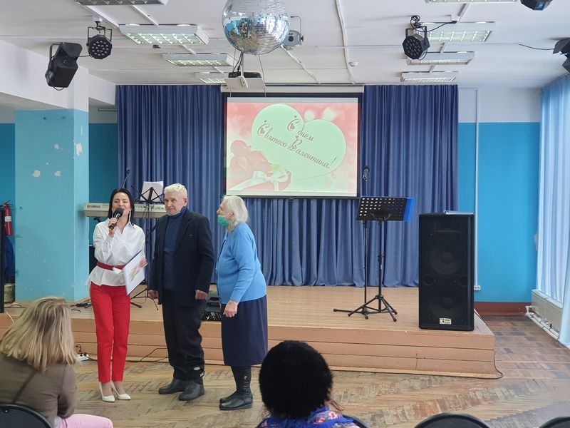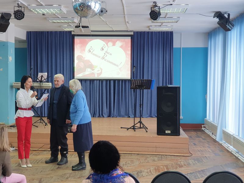 На праздничном концерте присутствовала пара, которая прожила в любви и согласии 65 лет – Пудовкины Михаил Ильич и Зоя Павловна. За годы, прожитые вместе, они ни разу не поругались, жили душа в душу, и они поделились с молодежью секретом, как на долгие годы сохранить теплые отношения. Как сказала Зоя Павловна, главное - это поддерживать друг друга. Всем присутствующим в зале были подарены «валентинки», которые принято дарить в этот день. Праздничная атмосфера никого не оставила равнодушным. Зрители получили массу положительных эмоций, забыв о проблемах и отдохнув душой. Все были очень благодарны за приятно проведенное время.