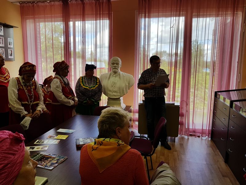 Встреча гостей началась с экскурсии по Центру досуга и народного творчества, музею боевой и трудовой славы, которую провел зам. директора по АХЧ, Расчетов С.А.. Далее гости посетили библиотеку, где заведующая Орлова М.Л. познакомила всех с фондом библиотеки и тематическими выставками.