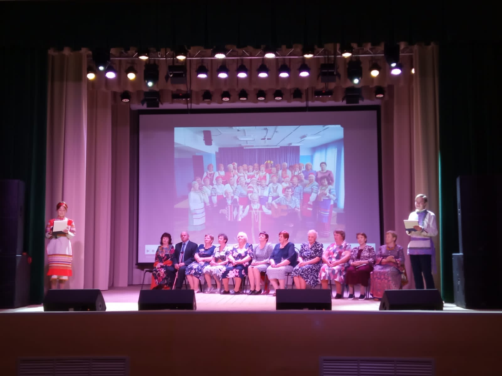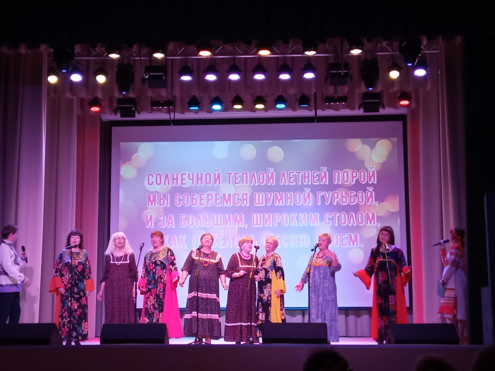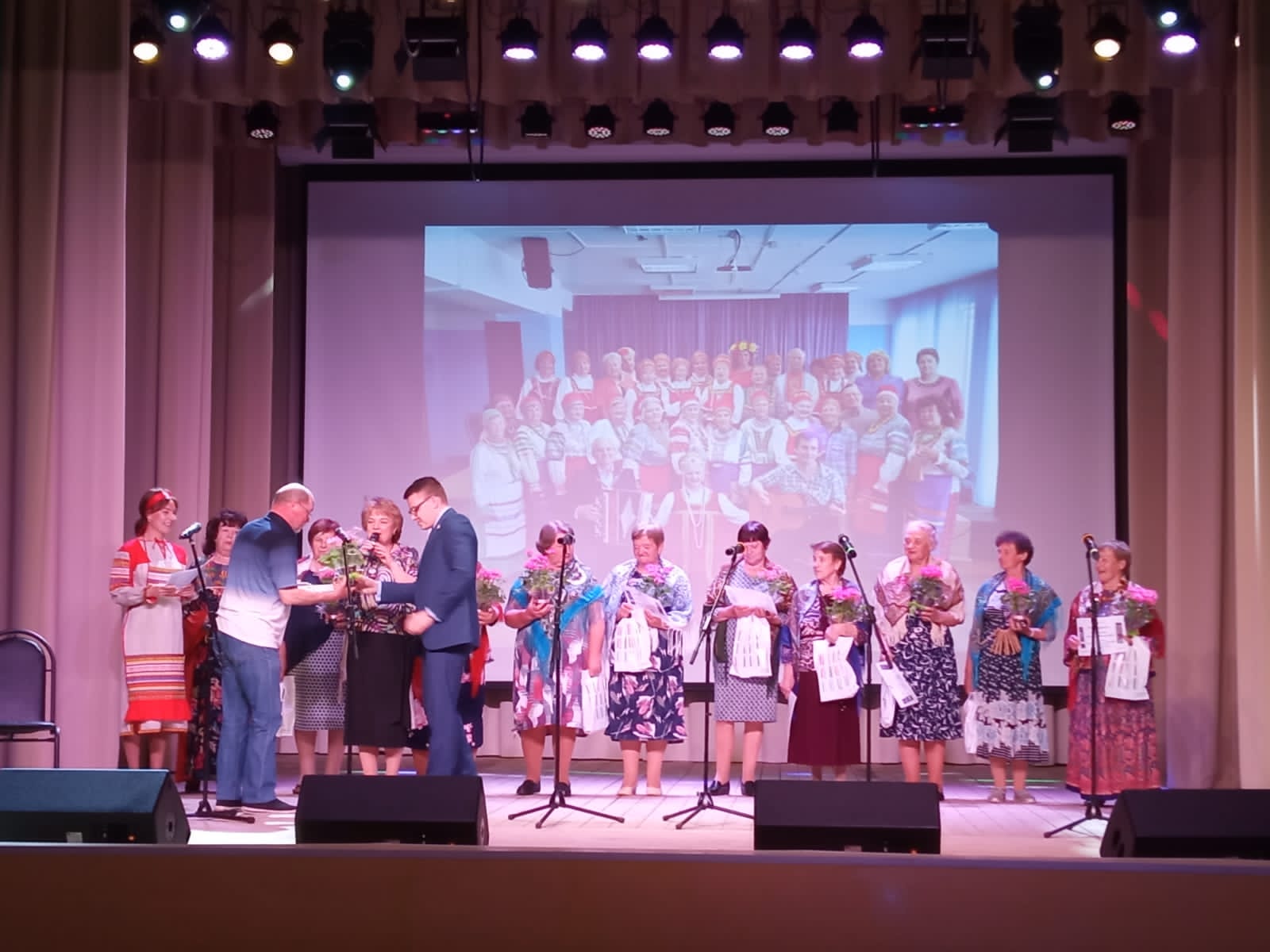 Под бурные овации зрительного зала приветствовали каждую участницу ансамбля, как отдельную творческую личность. И конечно для зрителей прозвучали в исполнении ансамбля задорные, звонкие русские народные песни. А затем на сцену вышли со своими поздравлениями коллеги по вокалу, участники вокального ансамбля «Русские просторы», руководитель Репина В.Г. исполнив для всех песни с пожеланием мира, света, любви и крепкого здоровья. В заключительном слове директора Ушакинского центра прозвучали слова благодарности за трудолюбие, талант исполнителей , которые дарили и щедро дарят участники вокального ансамбля Надежда зрителям. Каждая вокалистка получила из рук члена молодой гвардии при Государственной Думе, руководителя аппарата молодой гвардии Единая Россия, депутата Тосненского района Романа Вадимовича Бородулина благодарности, подарки и цветы. С поздравлениями выступили заслуженный работник культуры, художественный руководитель народного коллектива « Морская душа» Ф. К. Сидельник и активистка, житель поселка Ушаки Л. Ф. Клементьева.