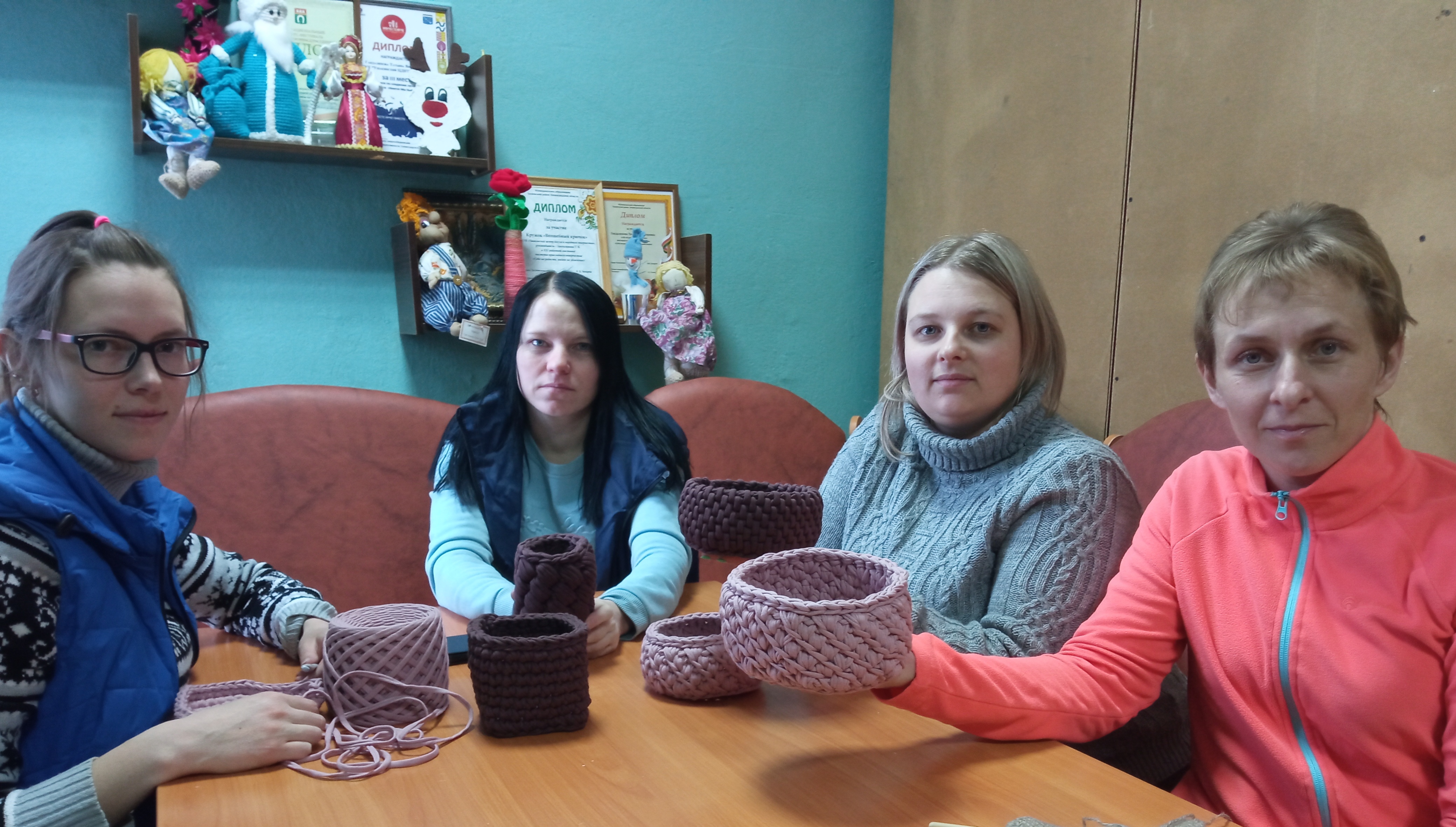 Руководитель кружка Гандалипова Татьяна Викторовна  провела несколько занятий со всеми желающими. На занятиях участники мастер-класса познакомились с особенностями вязания из трикотажнлй пряжи, научились вязать дно разной формы, а также изучили несколько популярных узоров для вязаных корзин.