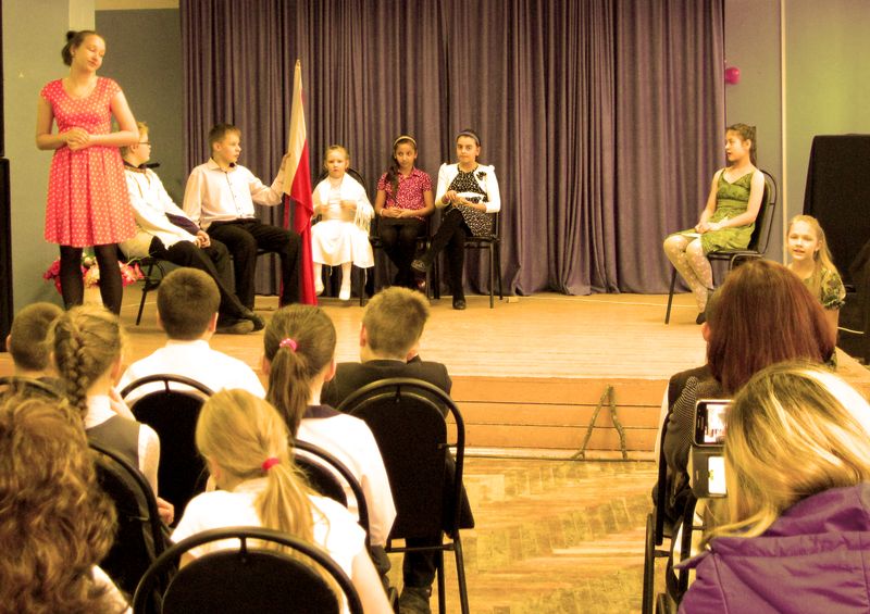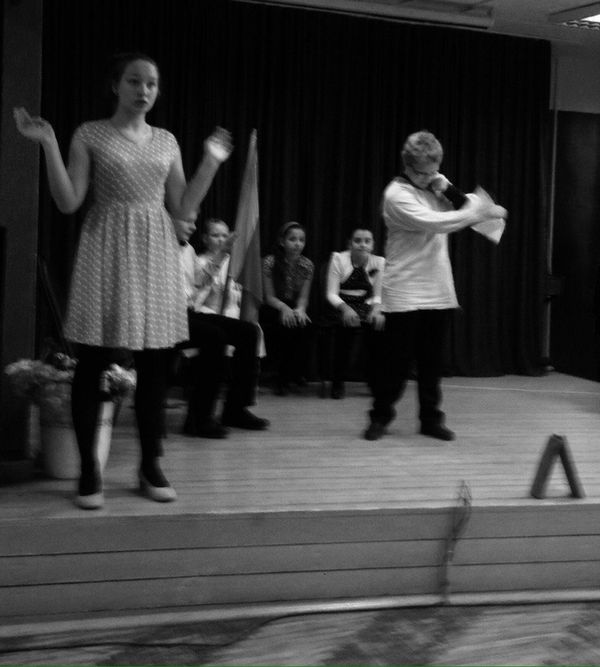 Наперебой озвучивали они правила поведения в стенах школы.В спектакле  были    использованы загадки, игры, песни на школьные темы советских композиторов. Получилось  веселое, живое  и полезное общение самодеятельных артистов  со зрителем.